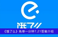 饿了么免单一分钟7月13日答案是什么?免单一分钟7月13日答案详解饿了么免单一分钟7月13日答案是什么?饿了么外卖平台是大家都非常喜欢的一个点餐平台,在这个平台上不仅可以选择的美食更加丰富,而且平台为大家带来的点单的优惠力度也是非常的大的,比如每天的饭点红包等等都是非常的具有诱惑力的。最近在这个平台上,还发起了一个每天可以免单的活动,目前这个活动正在火热的进行时间:2022-07-13 -