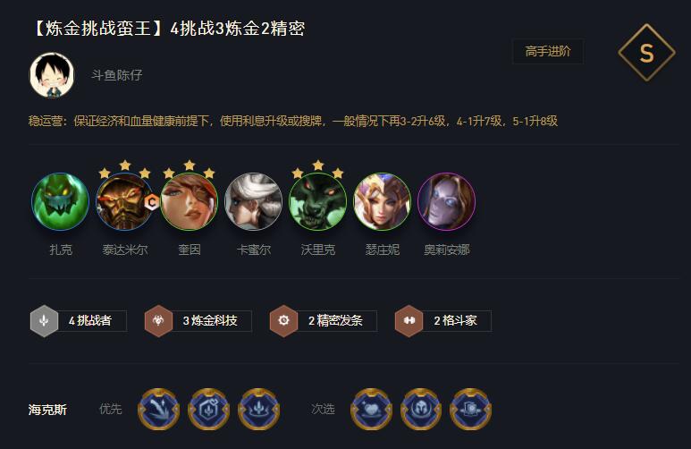 比较克制当前版本毒瘤的强袭希维尔,可以打后排输出比较缓慢,整体坦度不够的阵容,例如:狙神,黑白法师,但比较怕毒斗,斗士比较肉,需要巨杀才可以处理。这个阵容比较吃卡牌质量,二星蛮王打到五阶段会比较乏力,很需要三星的强度。