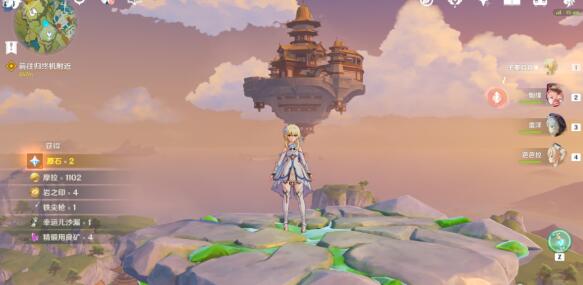 4、用风属性角色攻击四叶草,就会出现风,在风场上到一个平台上,但是距离群玉阁还有一小段距离。