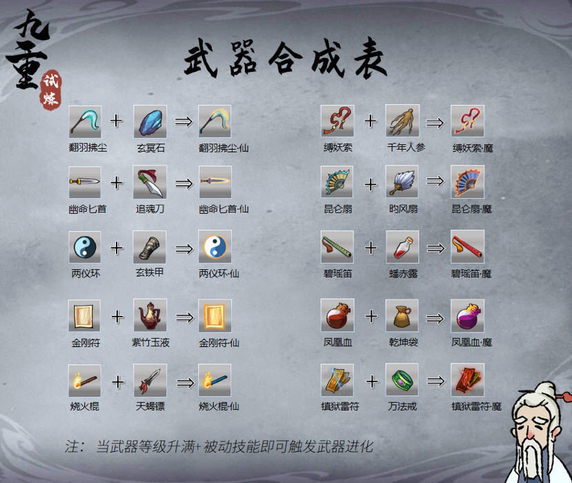 九重试炼游戏武器怎么合成?武器合成公式大全