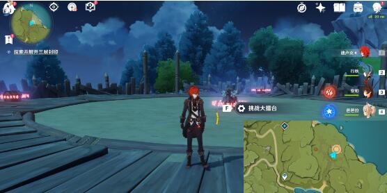 3、我们在达达乌帕谷北部丘丘人部落中找大擂台,点击挑战大擂台进行交互,限定时间内击败十个怪物即可完成擂台挑战。