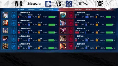 2022KPL王者荣耀夏季赛7月15日厦门VG vs 上海EDG.M第二场分析2022KPL王者荣耀夏季赛7月15日厦门VG vs 上海EDG.M第二场分析:厦门VG vs 上海EDG.M第二场 厦门VG 0:2 上海EDG.M ,上海EDG.M 再下一城。蓝方上海EDG.M进行Ban:蒙恬、东皇太一、鬼谷子、孙膑,Pick:夏侯惇、娜可露露、周瑜、鲁班七号、鲁班大师;红方 厦门VG进行Ban:公孙离、大乔、不知火舞、澜,Pick:马超、阿古朵、沈梦溪、李元芳、兰陵王 。时间:2022-07-17 -