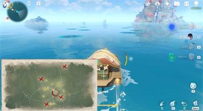 获得线索后从岛上出来,乘坐浪船来到四叶草标记处,航行期间,看天上圆环前进;