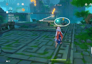 1、走进第一个房间 往右手边看 操作“止风枢” 选择“停止附近风场” 开启第一个限时吃微粒的挑战。