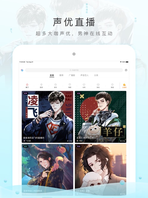 汇集中日知名CV、二次元、段子手、催眠等不同领域的大咖主播;开启语音连麦,和大咖互动,用声音交友;