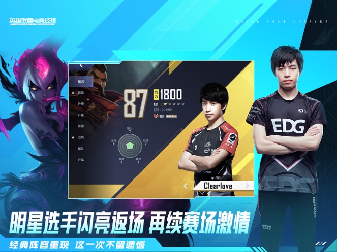 英雄联盟电竞经理下载安装电竞经理是一款非常好玩的新型策略对战游戏,玩家在电竞经理里可以体会到如同职业赛场上紧张刺激的感觉。在电竞经理中玩家将签约LPL职业选手,选择自己喜欢的战队图标进行职业培养。不同的职业选手之间有着不同的羁绊加成效果,你也可以帮助职业选择加强自己的“本命”英雄,而职业选手们在选择自己熟悉的英雄时会有更强的操作哦。在对战中玩家需要靠自己的策略来进行战术部署,选择合适的部署是前期拉开差距的重要手段,而在职业赛场中你也可以进行BP对方选手的拿手英雄,或是选择版本强势的英雄来增加优势。在电竞经理里你能体验到自己当教练的感觉,仿佛真的身处与电竞赛场一般。还等待什么呢?快一起来下载英雄联盟赛事官方授权的电竞经理手游吧。