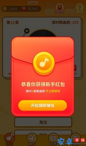 1、最爱猜歌红包版下载推荐给大家!这是一款以猜歌闯关为主题的游戏