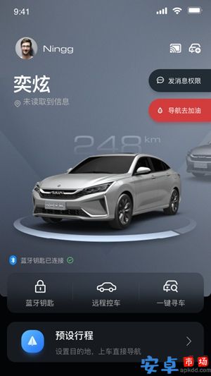 蓝牙钥匙、一键寻车、车况查看、预设导航、钥匙借出、车辆管理、