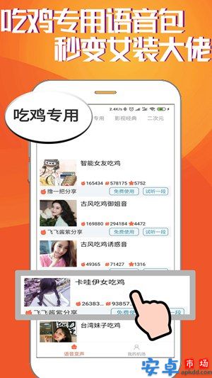 1. 语音包,拥有几十万个真人录制的甜美语音包,其中有群聊语音、私聊语音、撒娇语音、吃鸡语音、萌酱酱语音、大叔语音、大姐姐语音、清唱语音、伪音、暖男音等等