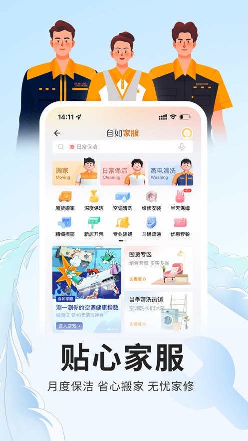 自如搬家:明码标价,打包帮手,全程搬运,换房也可以潇洒自如。